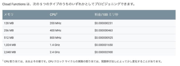 なお、メモリを増やす注意点としてその分時間単位の料金が増えます。(メモリあげるとCPUの性能も上がっているっぽい)